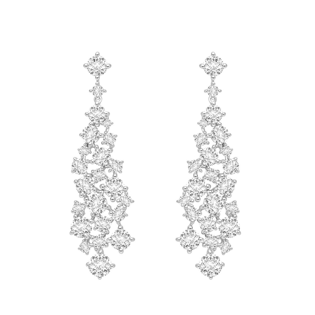 100 Cuts: Silver rhodium plated round cut 100 facet CZ chandelier earrings
