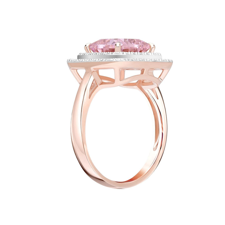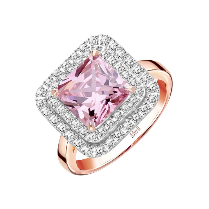Decorum: Sterling Silver Rose Gold Plated Pink CZ Square Cut and Double CZ Halo Ring