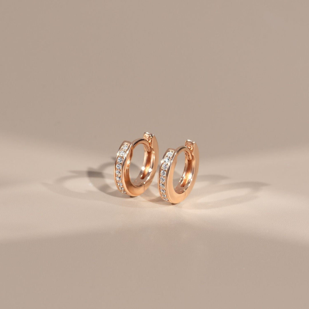 Little Piece of Me: Rose Gold Plated Silver Huggie Earrings with CZ (11.5mm)