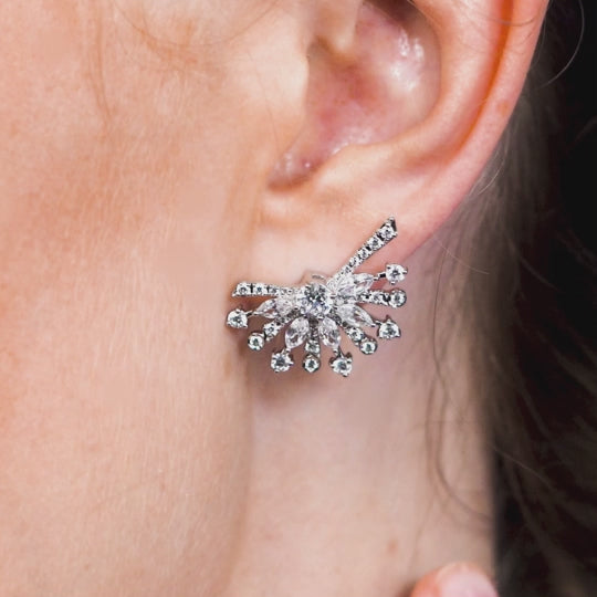 Snowflakes: Elevate your elegance with our snowflake stud earrings, a radiant fusion of celestial beauty and contemporary style. Crafted with precision, these star-shaped snowflakes are adorned with a captivating combination of Cubic Zirconia stones. The centerpiece features marquise-cut gemstones measuring 5x2.50mm, which lend an enchanting elongated elegance to the design. The surrounding accents are brilliant round-cut Cubic Zirconia stones, meticulously hand-set to dazzle with brilliant fire and clarity.
