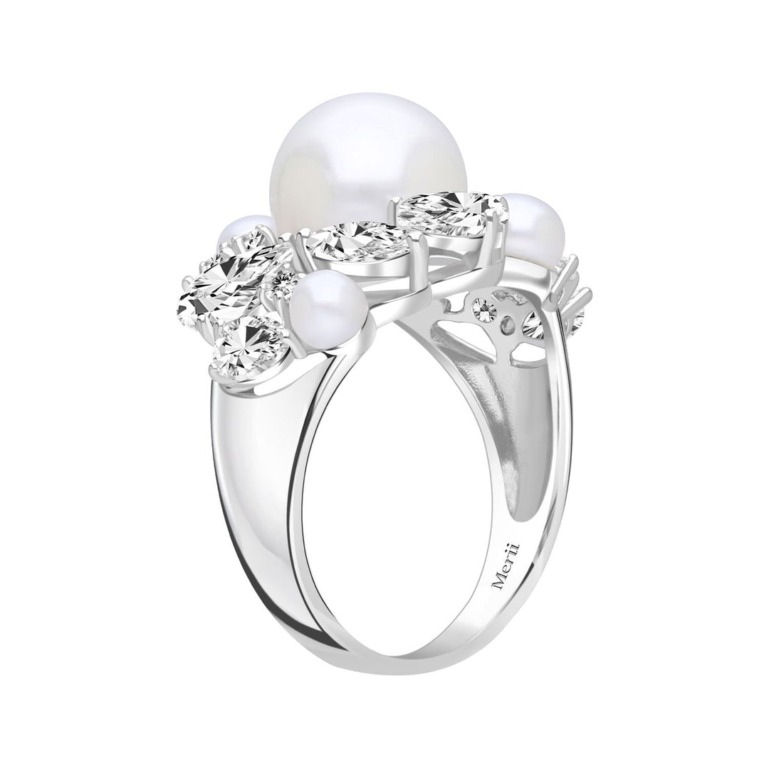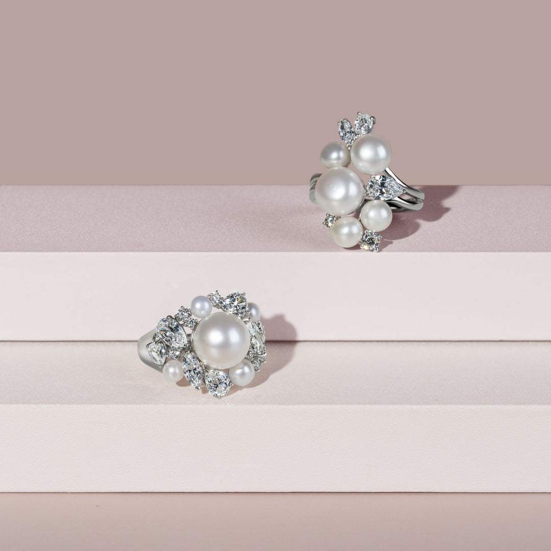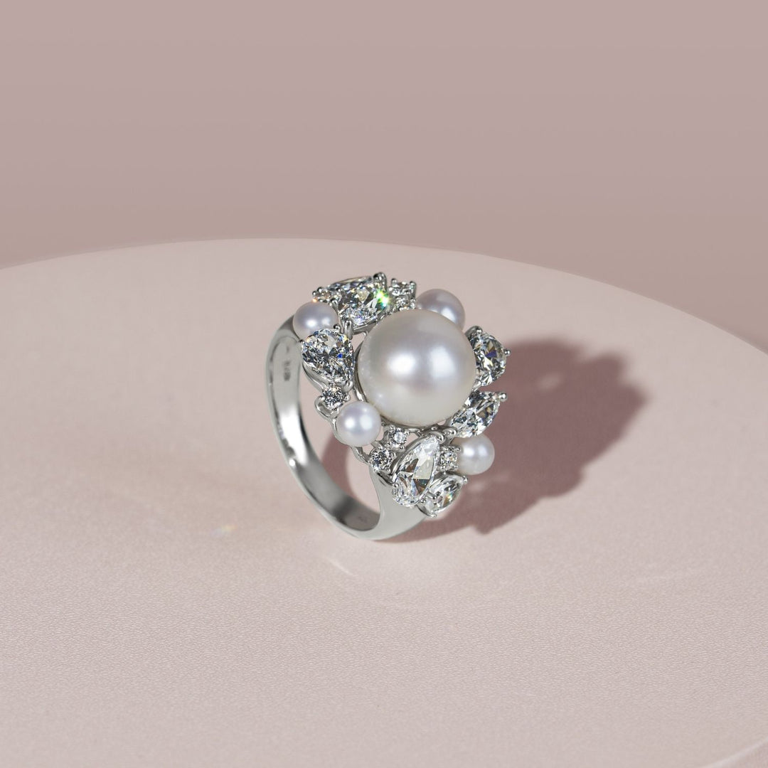 Classic Pearl: Sterling Silver Rhodium Plated Multi-Cut CZ & Princessl Cluster Ring