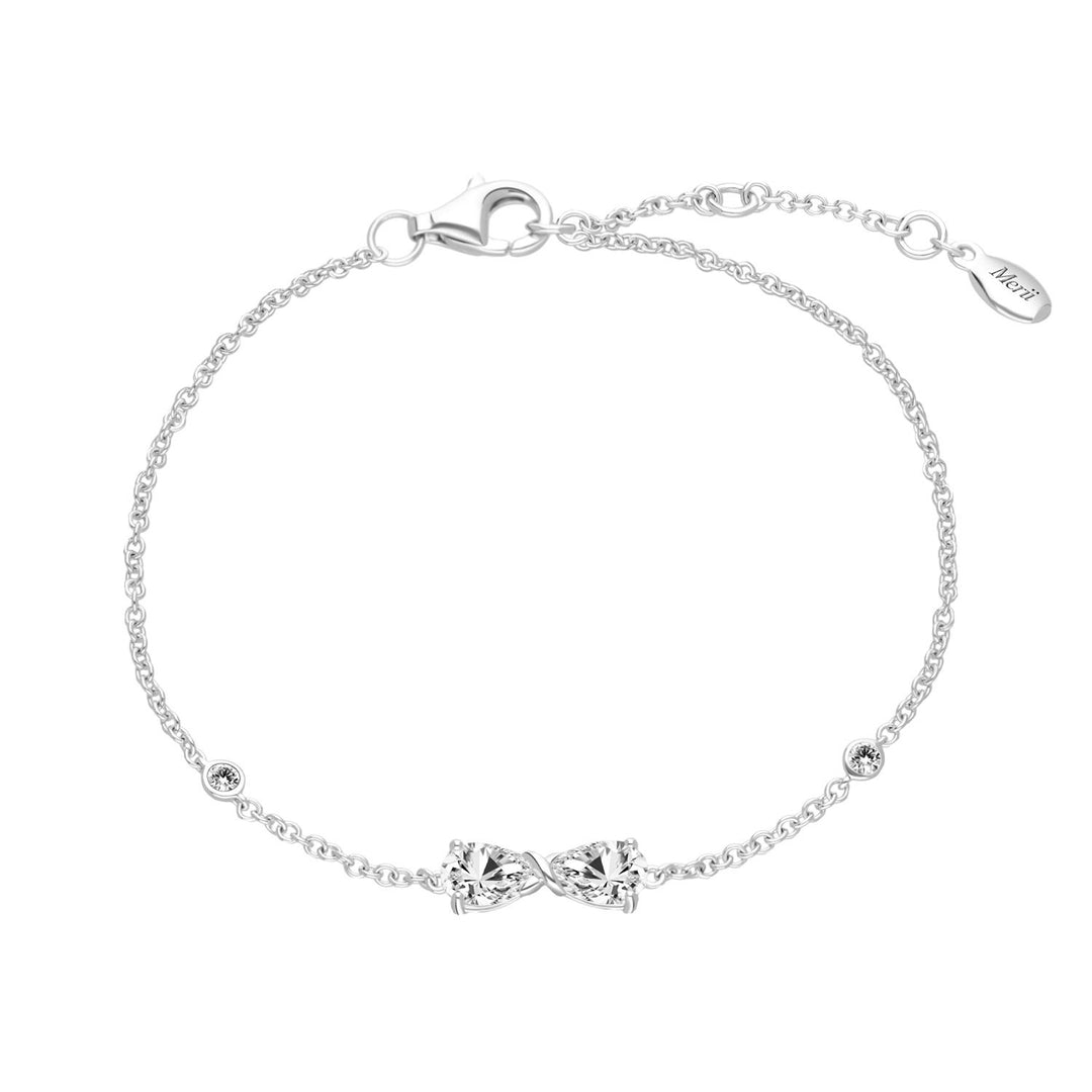 Ballerina: สร้อยข้อมือเงินชุบโรเดียมรูปโบว์ Infinity ประดับ CZ ทรงหยดน้ำ