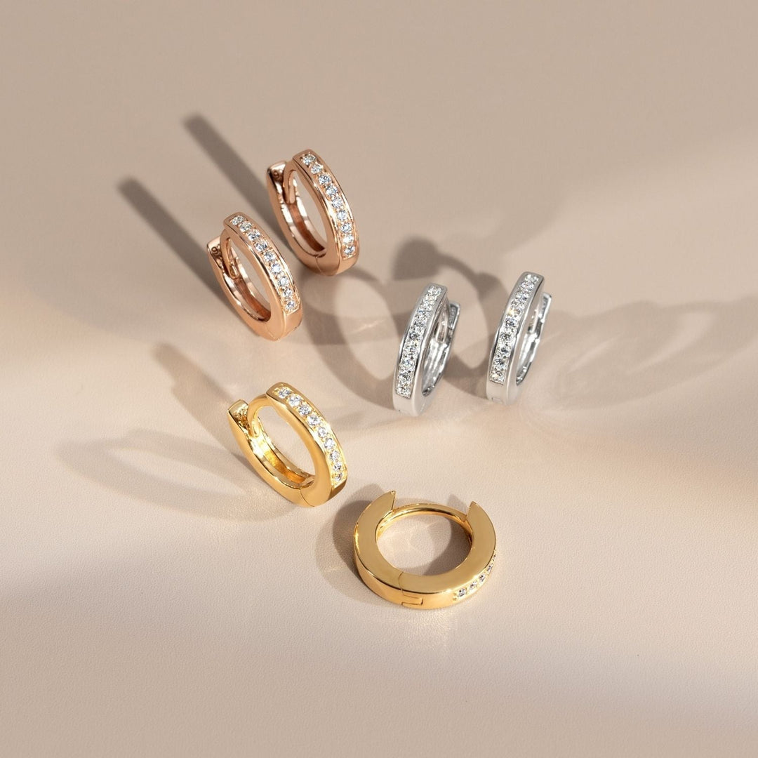 Little Piece of Me: ต่างหูห่วงเงินชุบทองคำ 23K ประดับ CZ (11.5 มม.)