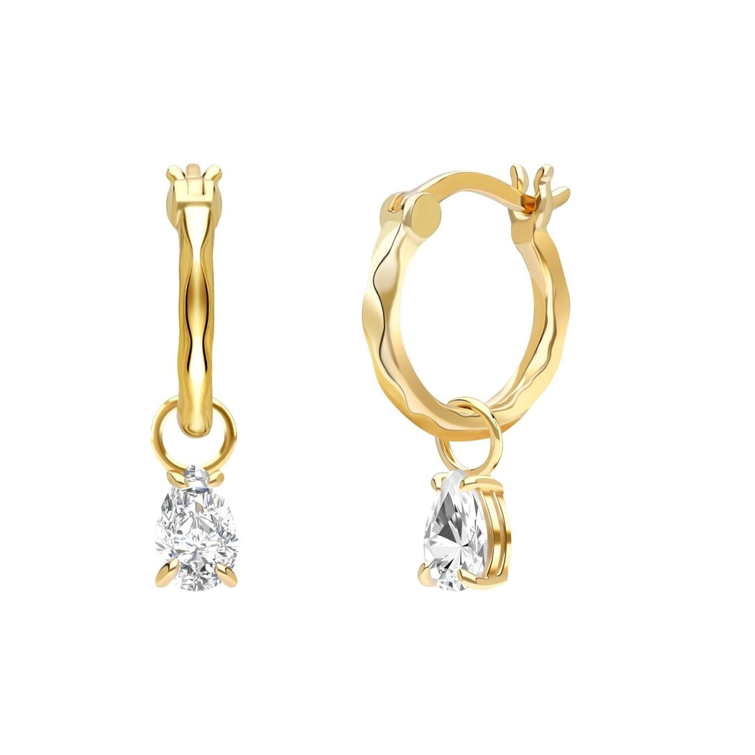 Little Piece of Me: ต่างหูห่วงเงินชุบทองคำ 23K ประดับ CZ ทรงหยดน้ำ