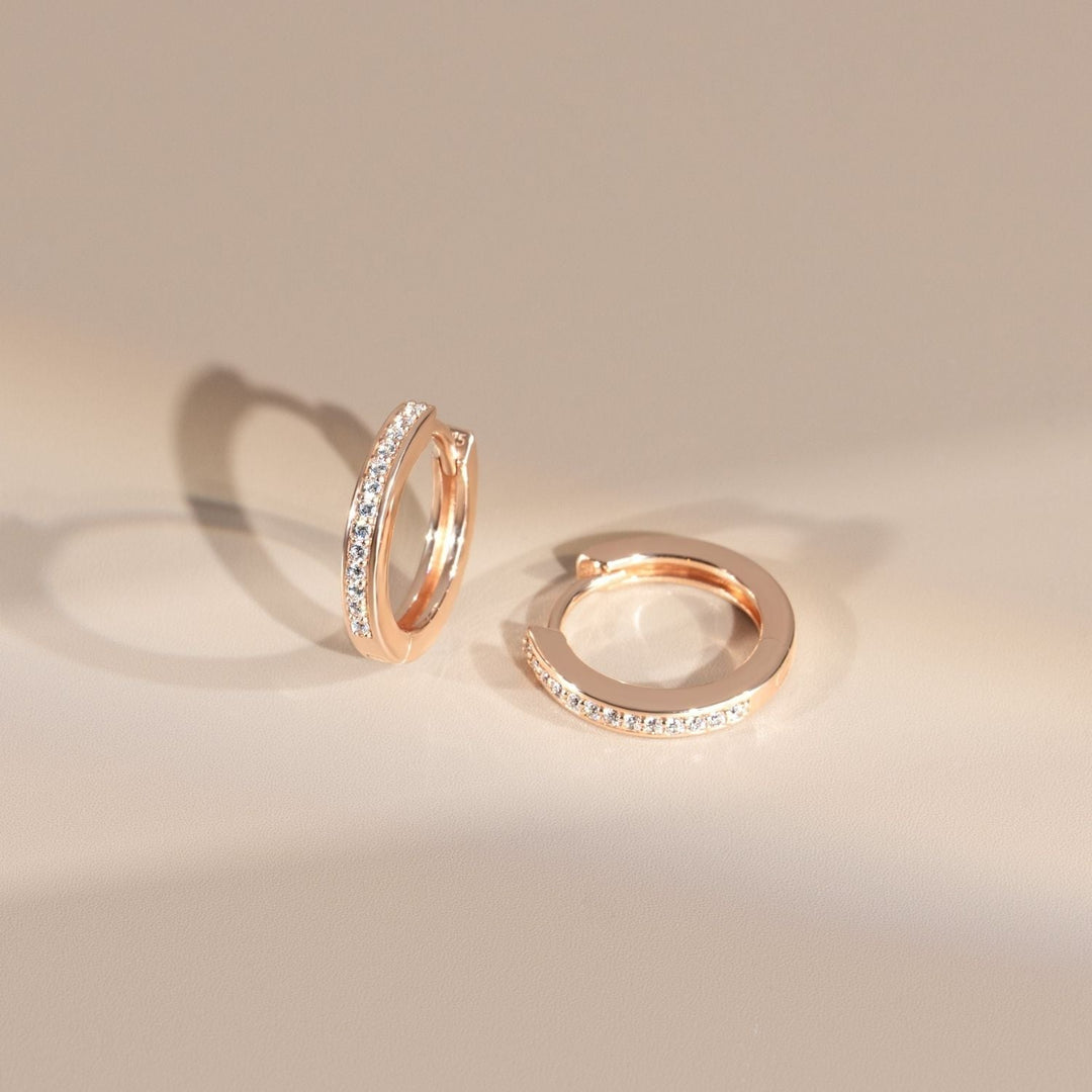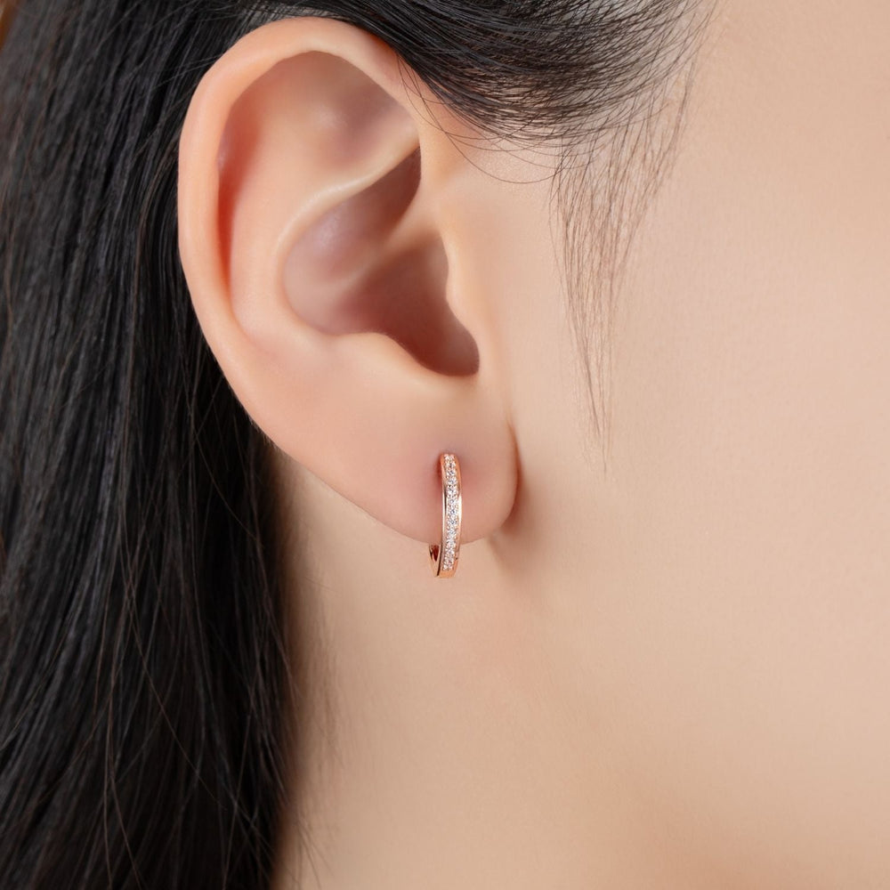 Little Piece of Me: ต่างหูห่วงเงินชุบโรสโกลด์ ประดับ CZ (15 มม.)