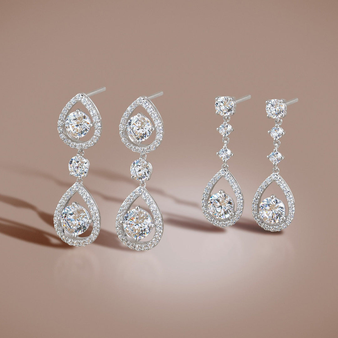 Regalia: ก้าวเข้าสู่โลกแห่งความสง่างามที่ประณีตด้วยต่างหูระย้าทรงหยดน้ำของเรา ซึ่งแต่ละชิ้นเป็นข้อพิสูจน์ถึงการผสมผสานระหว่างความมั่งคั่งและความซับซ้อน ชื่นชมเสน่ห์อันน่าหลงใหลของต่างหูคู่นี้ ที่สร้างขึ้นอย่างพิถีพิถันสำหรับผู้ที่ชื่นชมความยิ่งใหญ่ของการออกแบบอันหรูหรา เครื่องประดับชิ้นนี้ชุบด้วยโละโรเดียมเพื่อเพิ่มความแวววาว ประดับประดาอย่างโดดเด่นด้วย Cubic zirconiz (CZ) ขนาด 5.5 มม. เจียระไน 100 คัต จัดวางอย่างมีศิลปะเป็นรูปหยดน้ำอันสง่างาม